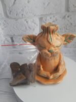 Кожен Омчик-аромчик виготовлений вручну від шматка глини до готового витвору. У комплекті: Омчик, тарілочка-пеньочок, 5 ароматичних конусів-димовушок, металева підставочка для пірамідок.