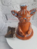 Кожен Омчик-аромчик виготовлений вручну від шматка глини до готового витвору. У комплекті: Омчик, тарілочка-пеньочок, 5 ароматичних конусів-димовушок, металева підставочка для пірамідок.
